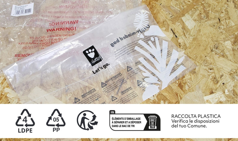 Die Plastikbeutel, die zum Schutz der Produkte während des Transports dienen, gehören zum Kunststoff-Recycling – also in den gelben Sack oder die gelbe Tonne. Dafür sollte der Plastikbeutel sauber sein, Klebeband und Sticker können dranbleiben. Welche Verpackungen in den gelben Sack oder die gelbe Tonne gehören, erkennst du an den Zahlen in den aufgedruckten Dreieck-Symbolen, zum Beispiel LDPE 4 und PP 05.
