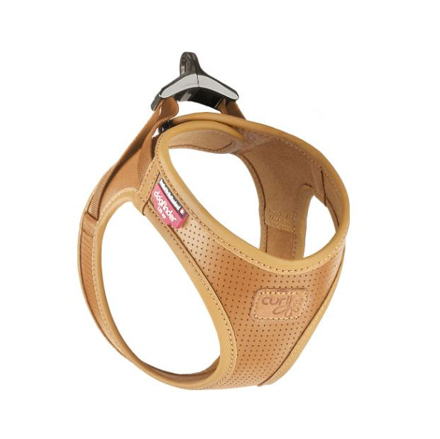CURLI Apfel Leder Geschirr ist aus hochinnovativem, pflanzlichem Hybridleder gefertigt – tierfreundlich und mit Fokus auf dem Wohlbefinden Ihres Hundes. Es vereint Funktionalität, Leistung und Ergonomie der prämierten Geschirre mit besonders hochwertigem Material und Design. Apfelleder wird aus Nebenprodukten der Apfelsaftindustrie mit modernsten Techniken hergestellt, wobei der Einsatz von nicht erneuerbaren Materialien weitestgehend vermieden und CO₂-Emissionen deutlich reduziert werden. Das Ergebnis ist ein hochwertiges Leder auf pflanzlicher Basis, das nicht nur viel weicher und damit angenehmer zu tragen ist als herkömmliches Leder, sondern auch eine deutlich bessere Leistung in Bezug auf Langlebigkeit und Haltbarkeit im Vergleich zu tierischem Leder garantiert. Apfelleder ist sehr widerstandsfähig und leicht zu reinigen. Die feine Perforation macht Ihr Geschirr atmungsaktiv und verleiht ihm einen besonders stilvollen Look.