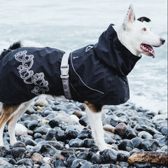 Der Drizzle Regenmantel ist ein praktisches Outfit für jeden Hund bei frischem und windigem Wetter. Aufgrund der wärmenden Folienbeschichtung auf der Innenseite des Mantels ist er ebenfalls für kühlere Temperaturen hervorragend geeignet. Die Aluminium-Folienbeschichtung reflektiert die Körperwärme des Hundes, regt dadurch die Durchblutung an und wärmt den Hund wirkungsvoll. Dank seiner muskelwärmenden Eigenschaften ist der Drizzle auch ideal für Hunde während des Aufwärmens vor dem Training oder an Wettkämpfen. Ebenfalls ist der Drizzle Mantel für Hunde geeignet, welche im Winter nur einen geringen Wärmeschutz benötigen. Der Mantel ist aus einem elastischen, geräuschlosen und atmungsaktiven Gewebe mit einer Schicht aus Houndtex gefertigt.
