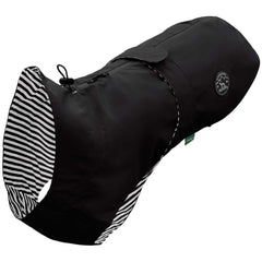 Der MILFORD Hunde-Regenmantel bietet klassischen Schutz wie ein Friesennerz. Elastische Bänder an den Hinterläufen halten den leichten Mantel auch bei Wind sicher. Die ergonomische Form schützt Hals, Rücken und Bauch, ohne die Bewegungsfreiheit zu beeinträchtigen. Das breite Rückenklettband ermöglicht schnelle Anpassungen während des Spaziergangs. Der wasserfeste Zwei-Wege-Reissverschluss passt zu Halsband und Geschirr. Das gestreifte Polyester-Innenfutter sitzt angenehm auf jedem Fell. Einfach abwischen oder bei 30 °C waschen.