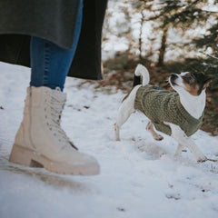 Schön und klassisch – der Hundepullover MALMÖ ist mit seinem klassischen Zopfstrickmuster nicht nur absolut im Trend, sondern sorgt auch für wohlige Wärme an kalten Tagen. Ob der Hund wegen wenig Unterwolle leicht friert, schon älter, besonders jung oder gesundheitlich etwas angeschlagen ist - für einen kuscheligen und warmen Hundepullover, ist jeder vierbeinige Freund dankbar. Der Hundepullover MALMÖ zeichnet sich durch besonders hohen Tragekomfort dank hervorragender Passform aus und liegt am Körper an, ohne den Hund in seinem natürlichen Bewegungsablauf einzuschränken. Übrigens: bei einem plötzlichen Regen- oder Schneeschauer kann einfach ein Hunde-(Regen)Mantel über den Pullover gezogen werden, um den Vierbeiner vor unangenehmer Nässe zu schützen. Bei Verschmutzung kann der Hundepullover einfach bei 30 °C gewaschen werden.