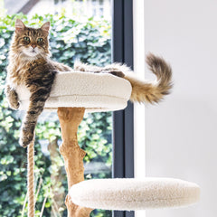 Der Kratzbaum Vilja von Designed by Lotte ist ein echter Hingucker. Hergestellt aus Dattel- und Birnbaumholz, strahlt der Kratzbaum Natürlichkeit aus und fügt sich harmonisch in Ihr Interieur ein. Die oberste Ebene des Kratzbaums ist mit einem gemütlichen Korb aus hochwertigem Teddystoff ausgestattet. Hier kann sich Ihre Katze entspannen und gleichzeitig das Geschehen von einer erhöhten Position aus beobachten - eine Aktivität, die Katzen besonders mögen.