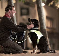 Mit dem flexiblen Verstellmechanismus vorne und unter dem Bauch lässt sich die Weste schnell anpassen. Auf dem Schildchen am Kragen ist Platz für die Telefonnummer des Besitzers.