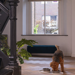 Schützen Sie Ihren Boden auf stilvolle Weise mit der Napfunterlage Oona in sanftem Beige. Sie bewahrt Ihre Böden effektiv vor Flecken und Verschmutzungen durch verschüttetes Futter oder Wasser. Entwickelt von Designed by Lotte, verbindet diese Unterlage praktische Vorteile mit einer eleganten Optik für den Futterbereich Ihres Haustiers.