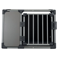Dank des Rahmens aus Aluminium ist die Box stabil, robust und hat trotzdem ein geringes Eigengewicht. Durch die abgeschrägten Seiten fügt sich die Box ideal in Ihren Kofferraum ein und passt sich an die Lehne der Rückbank an. Die Gittertür ist mit einem Sicherheitsverschluss ausgestattet, wodurch Sie Ihren Liebling stets wohlbehalten in seiner Box wissen. Ein idealer Begleiter für lange Autofahrten!